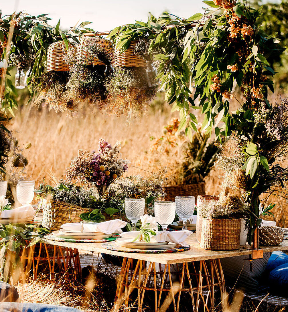 We bring your vision to life with elegant, nature-inspired event décor. Utilizing natural and seasonal elements, we craft stunning environments that enhance the atmosphere, making your event both visually captivating and meaningful.